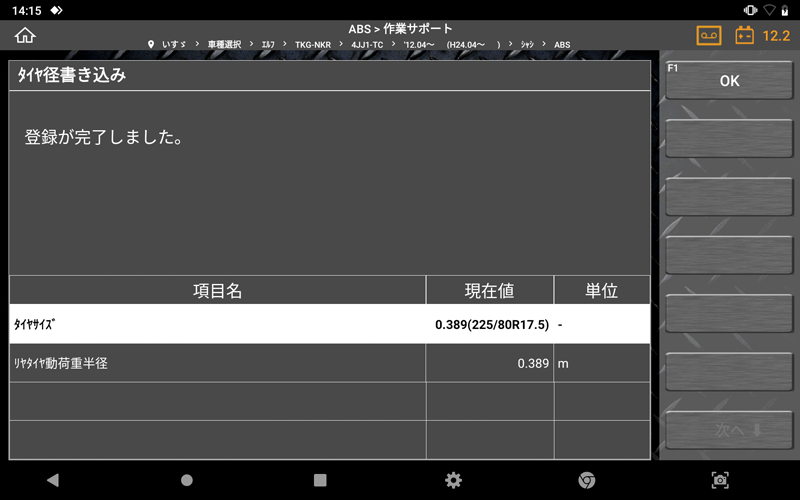 エルフ(Sxx、Txx)の車両において、EHCU交換時に必要な、タイヤ径書き込みの作業サポートに対応いたしました。