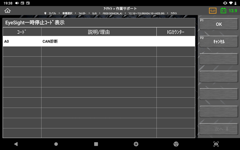 アイサイト一時停止時に置ける原因を表す、EyeSight一時停止コード表示の作業サポートに対応いたしました。
